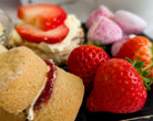 - 4 Bramble Cherry & Sultana Scones, served with Cheshire Clotted Cream and Boddingtons Strawberry Preserve for the ultimate cream tea. Jam or cream first, the choice is hers.